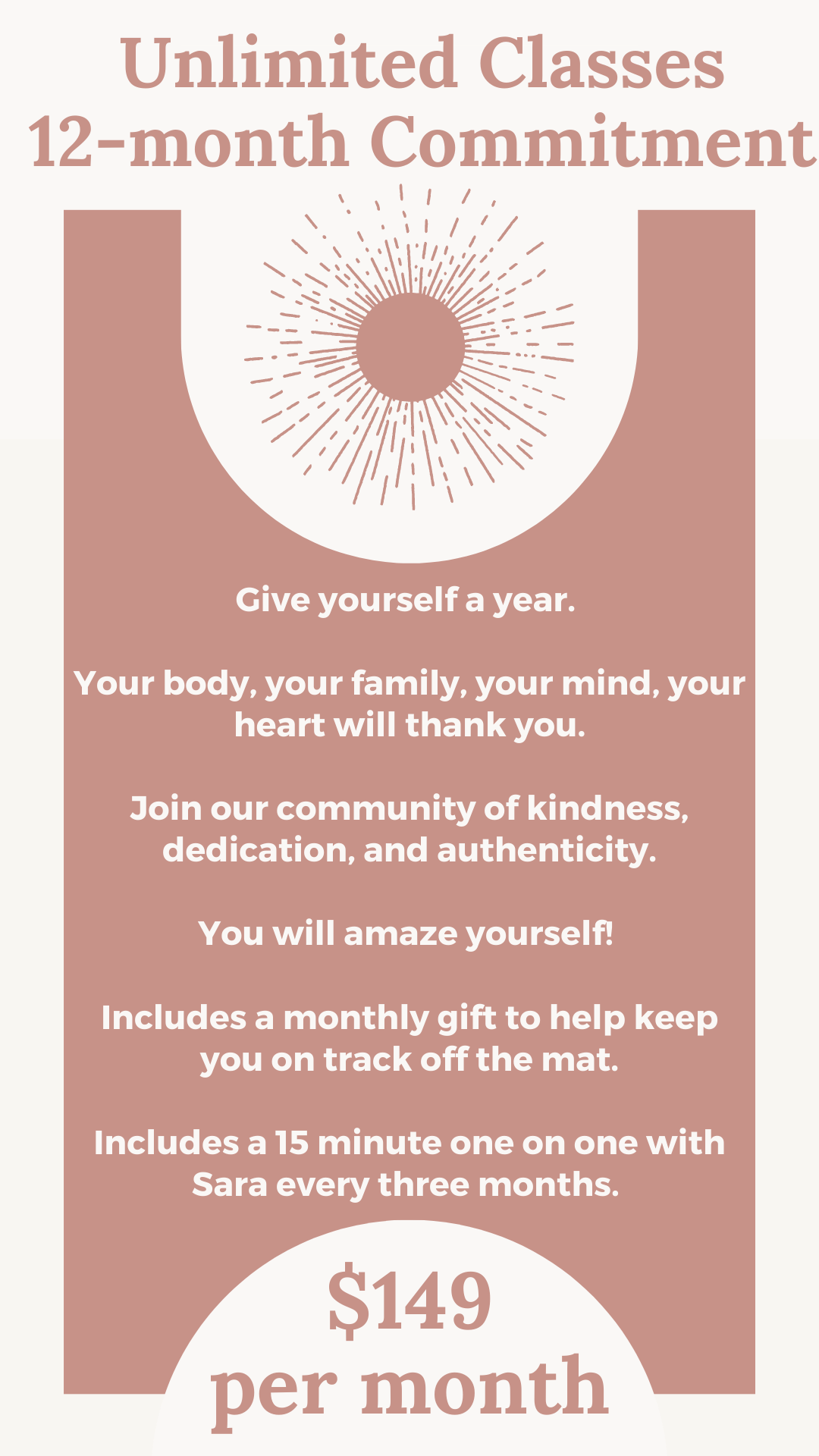 You come to class more than two times per week. Sometimes it’s three times per week, sometimes you double up on classes in a day, sometimes you come every day. We love watching yoga transform you—body, mind, and heart—and then watching you transform the people around you.